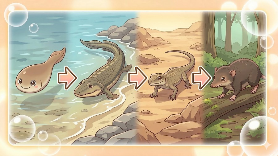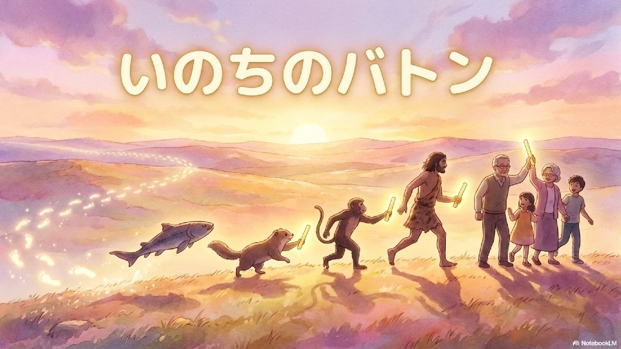『生きものたちの進化の中でバトンが繋がり、キセキ的にぼくたち人間がいるんだよ』 そんな内容にしてみました。