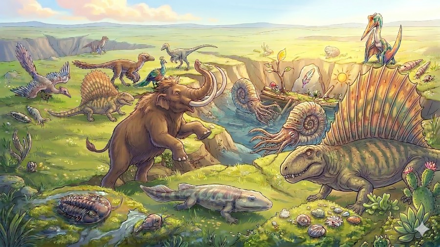 恐竜などの古生物と