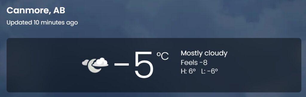 現在のキャンモア(Canmore)は “マイナス5度” まだまだ冬です(笑)